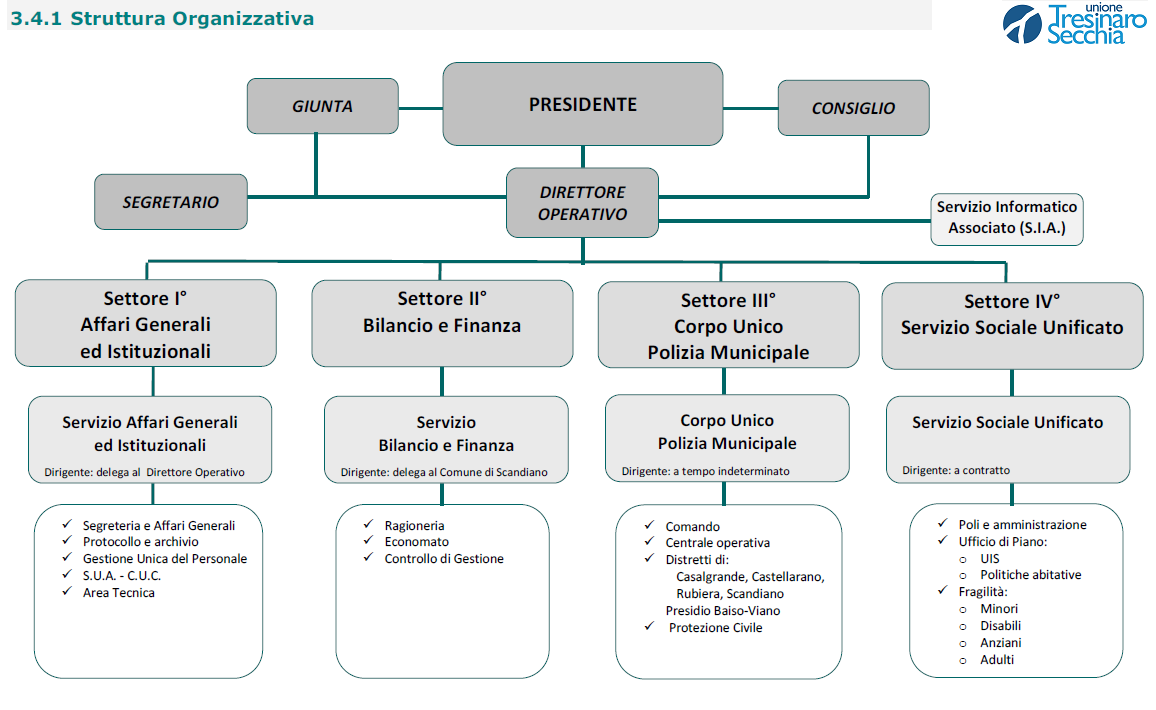 L’organizzazione dell’Unione Tresinaro Secchia è regolata dalle norme contenute nel Regolamento sull’ordinamento degli uffici e dei servizi.